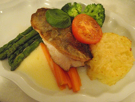 Filátka ze pstruha, grilovaná zelenina, máslová omáčka, bramborová kaÅ¡e – 180,- Kč